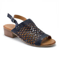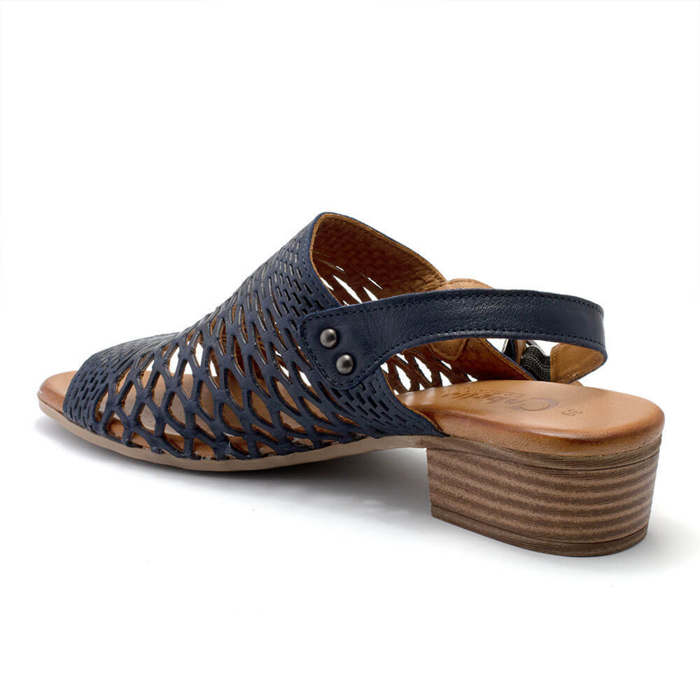 - Adjustable slingback strap with a functioning buckle