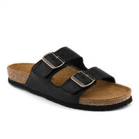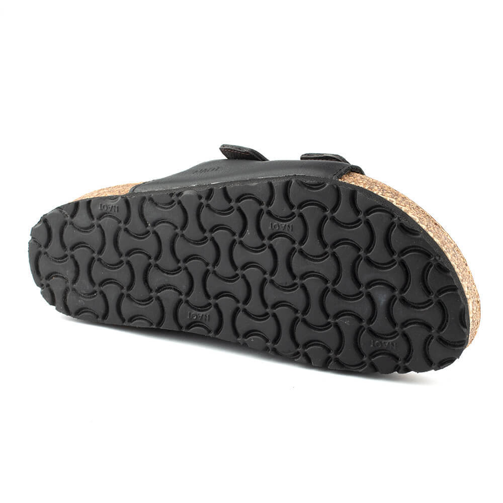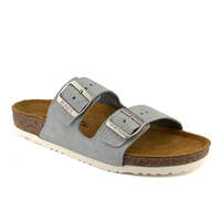 - Anatomically correct cork and latex footbed with arch support is covered in soft suede