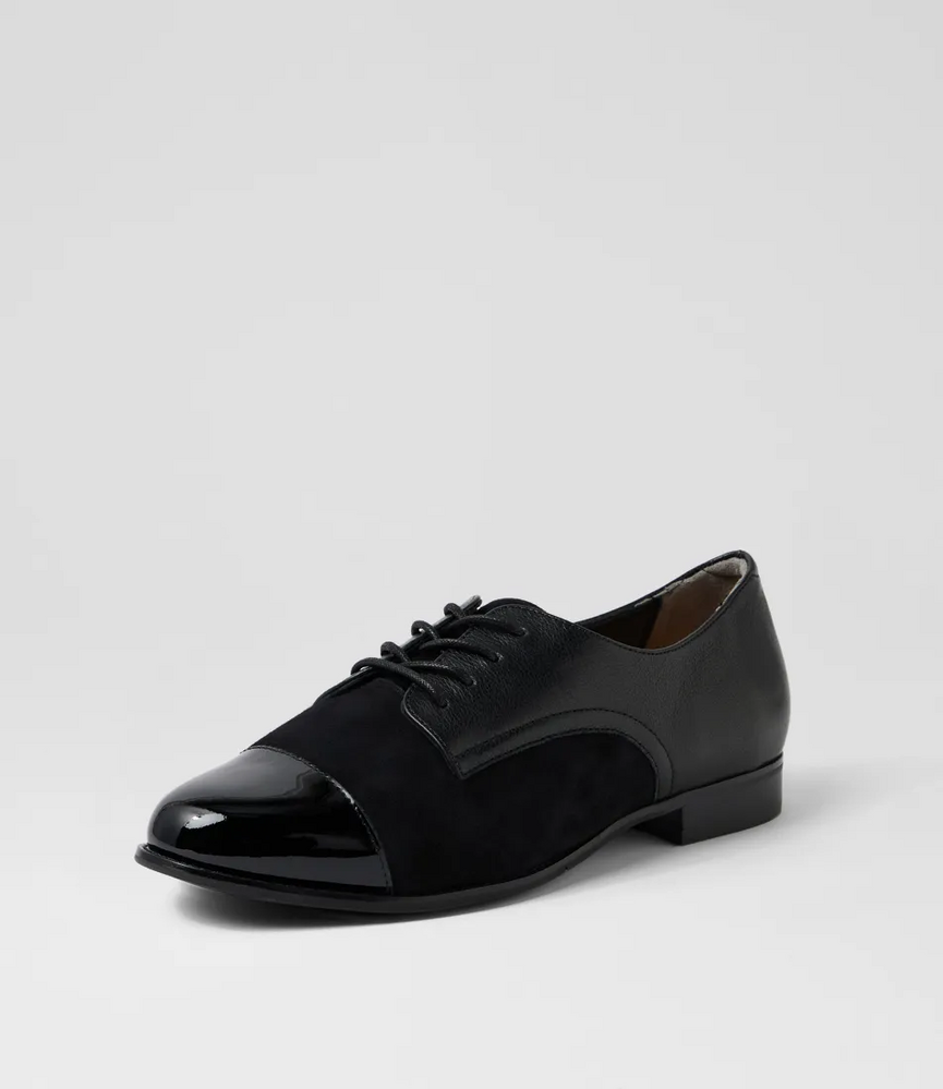 The Ziera Tobin is a refined lace-up dress shoe designed for women who want a polished look without compromising on comfort. Crafted from premium black leather with a subtle royal print multi detail, Tobin delivers understated elegance with a modern edge.